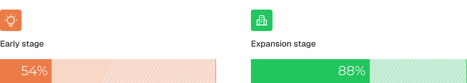 Across the companies we studied, SCIM is nonexistent at early stage and only appears in 30–33% of growth stage companies.