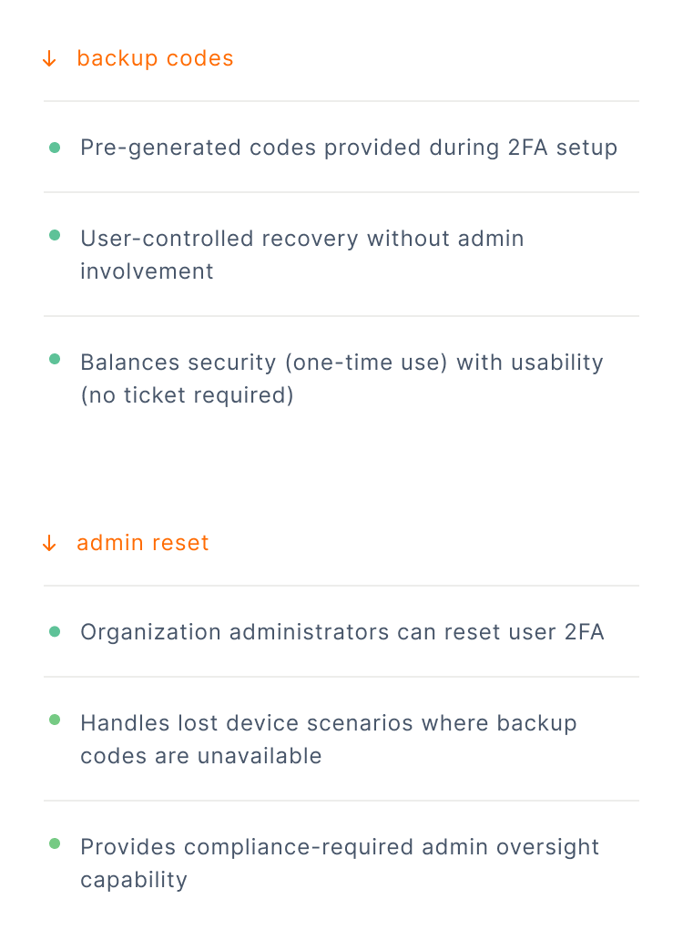 No product offers 2FA on free tiers because the need typically emerges during enterprise procurement, and not during initial product evaluation. When 2FA becomes required, enterprises also expect reliable recovery options for native accounts.